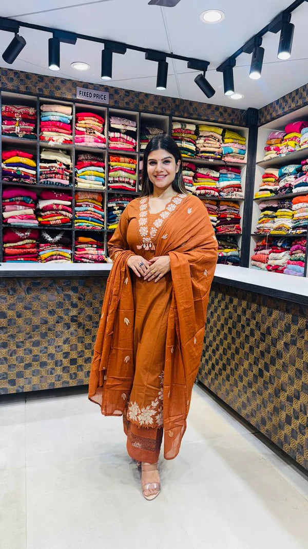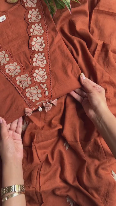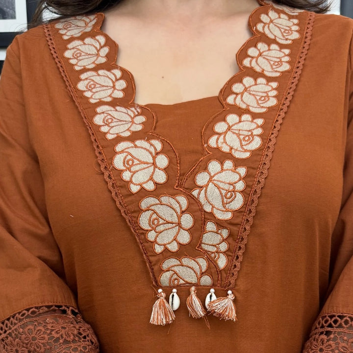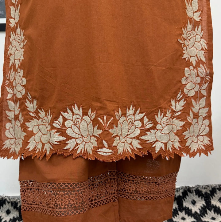 Elegant Embroidered Suit Set with Cutwork and Complete Cotton Linning